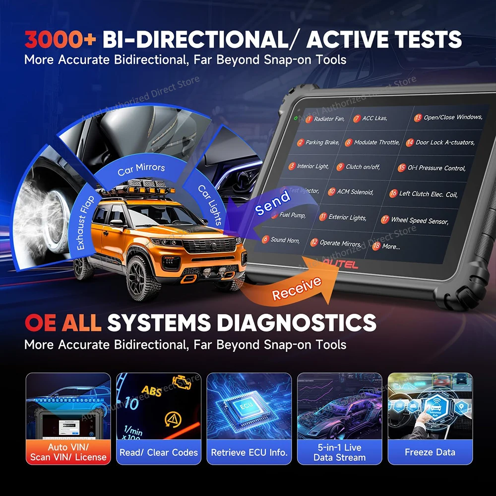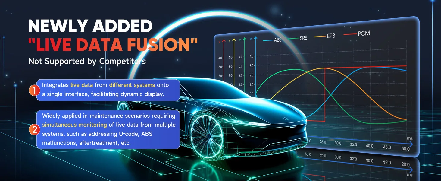 Autel Ultra newly adds "Live Data Fusion" feature, which enables the integration of live data from different systems onto a single interface, facilitating dynamic display. Widely applied in maintenance scenarios requiring simultaneous monitoring of live data from multiple systems, such as addressing U-code, ABS malfunctions, aftertreatment, etc. Work with Chrysler / Dodge / JEEP / Hyundai / Kia / Genesis / VW / Audi / Bentley / Lamborghini / Seat / Skoda / Toyota / Scion / Lexus / Ford / LandRover / Jaguar / Renault, etc. Please check the compatibility first via us.